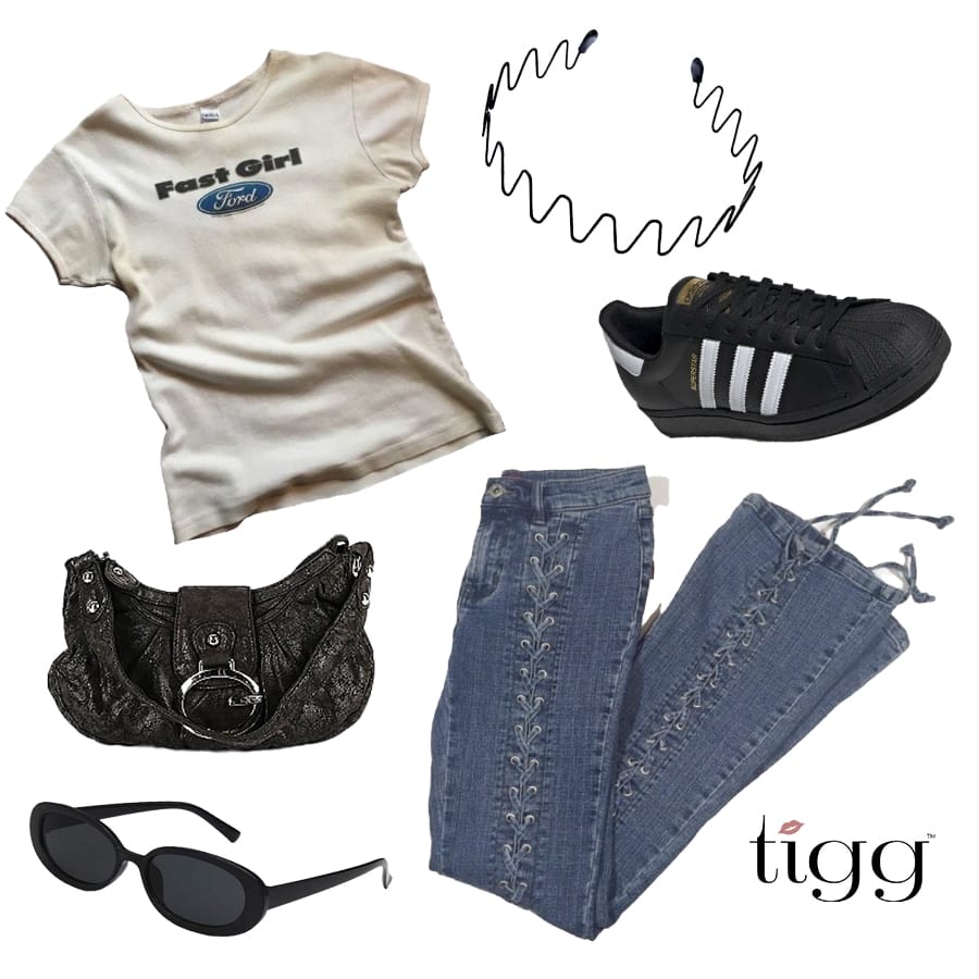 Nevertheless, this fit is still super cute, and it's great because you can make it your own. Use a cool vintage baby tee you already own and pair of your favorite pants and boom! And if you don't have a favorite vintage baby tee, this is your sign to buy the one you have been eyeing on Depop for the past week.