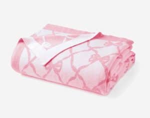 She takes her throw blanket from LoveShackFancy (that was probably gifted to her by them) and wraps it over her shoulders while heading to her gorgeous kitchen.