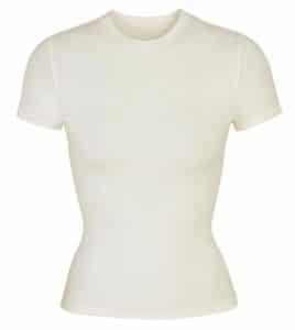 I love pairing green and pink together; I think it's such a fun and flirty color combo, so you know I had to make this. These slippers from Ugg are a great wait to add color to a comfortable outfit. Like you can't see me in a pair of bright pink slippers and say "uh her outfit is like uh so plain and boring..." like hello? I also love this white top from Skims; it fits your body so nicely, so it pairs well with baggy pants. You know, big pants, little top. And trust me, little miss Kimmy knew what she was doing with this clothing line. Like I need a separate section in my closet just for Skims. And I like this off-white color she did, it adds some contrast.