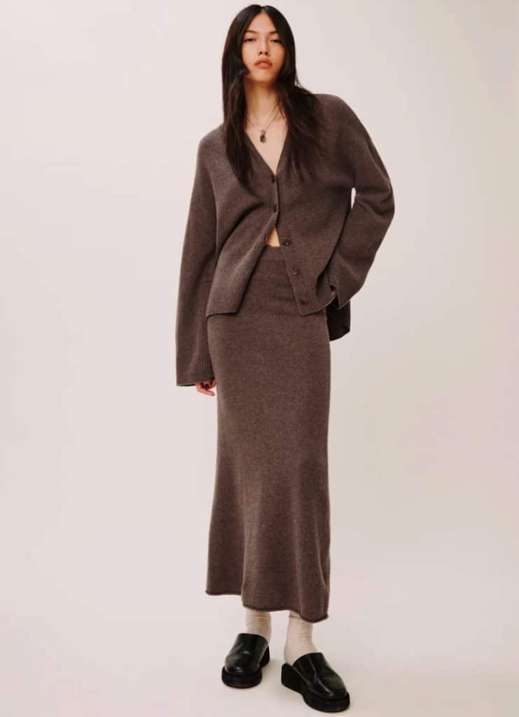 I've recently seen sweater sets hit the model-off-duty clan hard. Gigi Hadid and Elsa Hosk were seen wearing them, and we do when they do. They look classy and chic and take no effort because they are a matching set, so it's like a one-piece but really it's a two-piece. My favorite part about this set is the endless shoe options, which means you can dress this look up or down. It would look great with Uggs or with loafers or with the boots I mentioned above.
