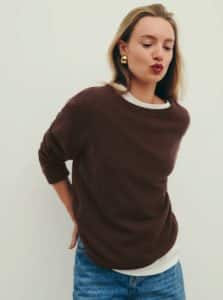 Is this not the most perfect fall sweater? It's so simple and chic, which means it will go with everything and never go out of style. I also love this shade of brown, it's perfect for autumn, and I think this color will look amazing with blue jeans and black boots (see below). But on top of that, it's the perfect sweater to wear on top of your new vintage white tee because it shows just the right amount of that shirt underneath. Add some gold hoops and rings, and you have the perfect fall look.