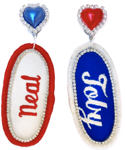 BEDAZZLED VINTAGE MECHANIC NAME PATCH EARRINGS (more names)