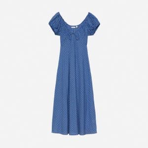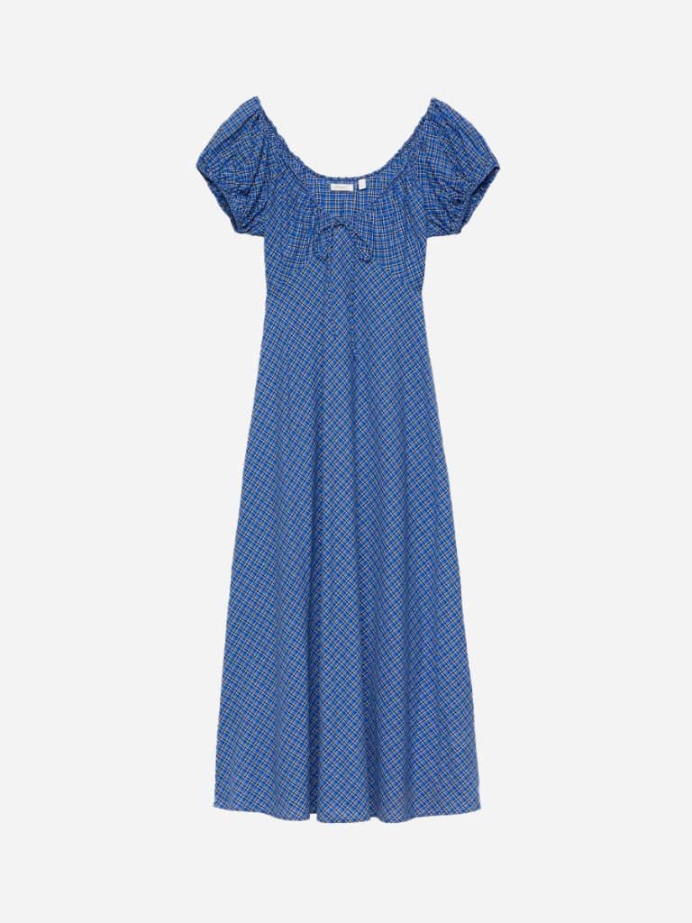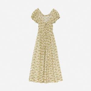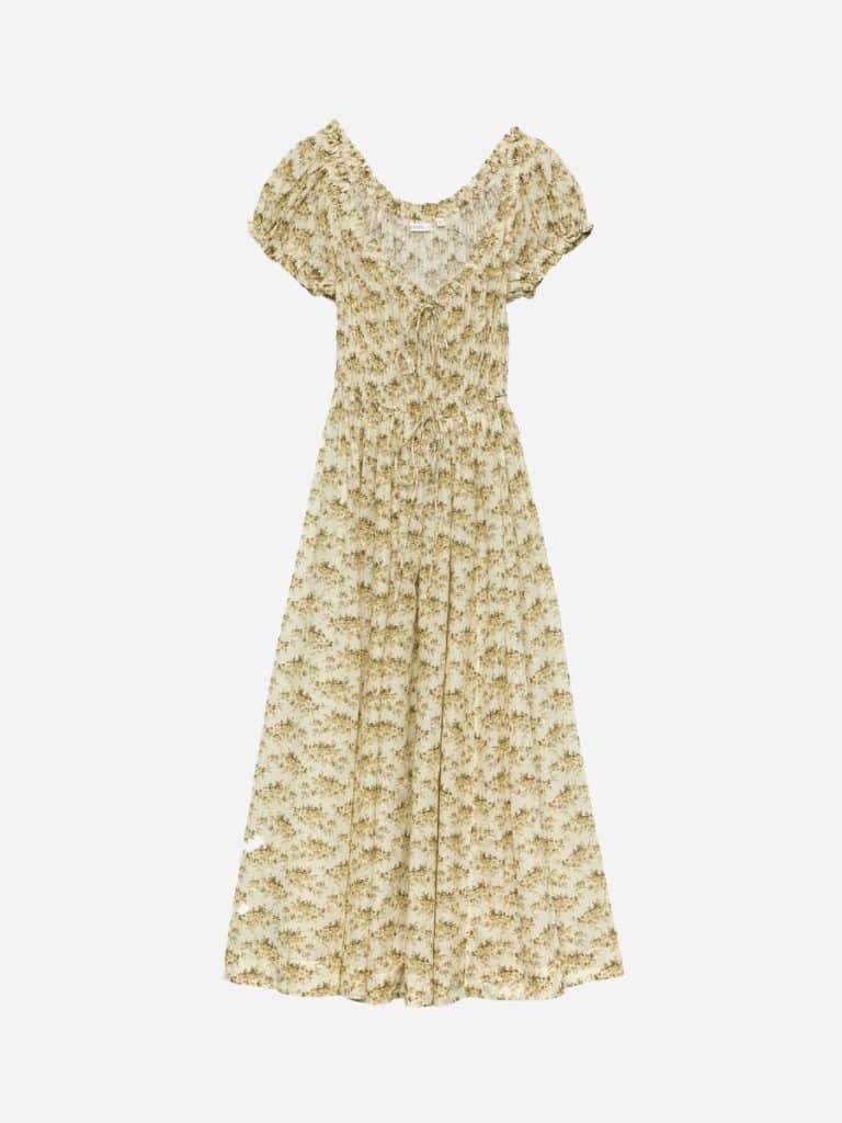 Cut in airy organic-cotton voile, Sofia marries a collar-bone-skimming scoop neckline (finished with a sweet tie) to short puff sleeves and a fitted bodice that releases into an ankle-grazing, bias-cut skirt. The result feels vintage-ladylike yet low-maintenance. It's versatile and can be worn to brunch or errands in the city; regularly $248, it lands squarely in the “it's good quality” zone without tipping into guilty purchasing.