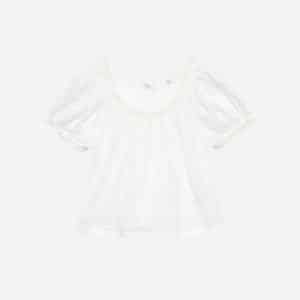 Soft organic-cotton voile, scalloped lace trim, and pintuck clusters give Frederica its romantic swing. The slightly cropped silhouette tucks perfectly into high-rise denim, which is what I'm reaching for as an everyday look. Or you can take my boho chic route and style it as I did with a drapey long cream skirt and knee-high black boots. Bonus points if they are rain boots and you can run through the mud in the English countryside. But like I said: bonus points.