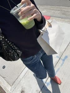 "as an it girl in her first year of college, my top priorities are definitely saving both time and money. i am nothing if not a drugstore girlie, so most if not all of my makeup/skincare/shower products can be found at your local cvs, walgreens, what have you. the maybelline instant age rewind concealer has been my holy grail since middle school and has saved my life after many a late night. my daily look has actually become pretty minimal (save for the occasional red lip or touch of glitter if i’m feeling fancy) as of late to allow for as much beauty rest as possible before my morning classes, so i actually do most of my “getting ready” the night before. i use my favorite shea moisture intensive hydration hair masque once a week, and i love to sleep with a heartless curl hair scarf for a quick shake-and-go style that requires little to no maintenance. since i don’t tend to wear foundation on a day-to-day basis, keeping my skin clear and hydrated is a must. i recently discovered that trader joe’s actually has a ton of super affordable skincare products that have absolutely transformed my routine (my favs are the hyaluronic serum and rose water toner)! and of course, who is an it girl without her signature scent and staple jewelry? i’ve been super into warm, vanilla-based fragrances for the fall and winter months so ‘jazz club’ by maison margiela and ‘eilish’ by billie eilish are my current go-to’s. i also would never be caught dead without my gold angel number necklace, mini hoops, and signature wine red manicure well intact. after that i just throw on the fit for the day, grab my canvas tote, and i’m ready to go!"