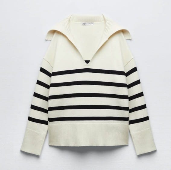 Another great striped sweater because you can never have too many. It's a different variation from the first sweater I mentioned, which is perfect if you wanted a black and white striped sweater but wanted a more classic look.